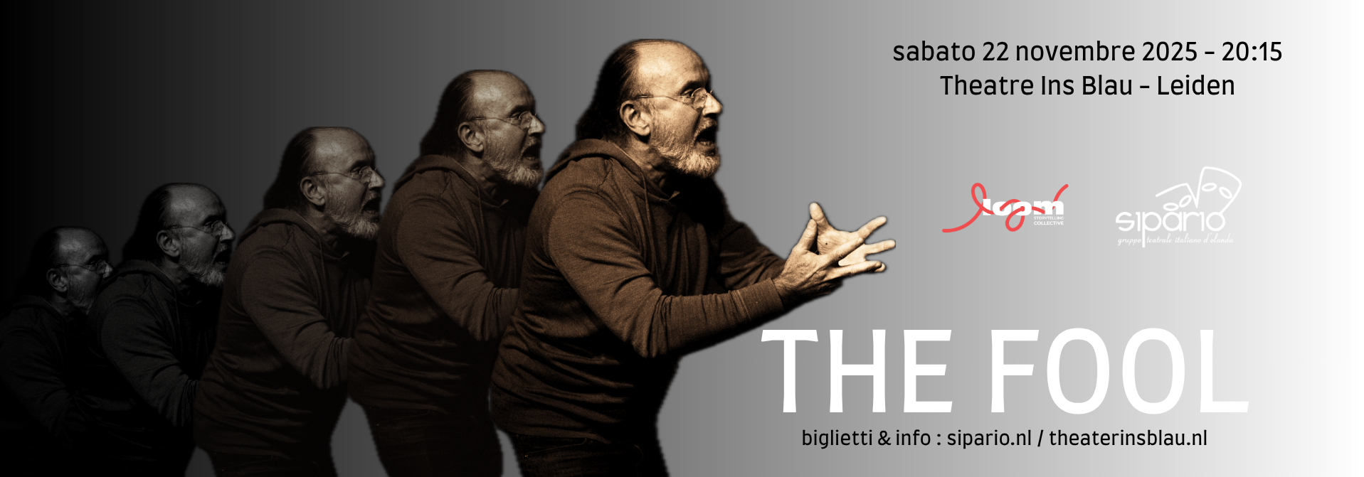 Lo spettacolo “7 minuti” di Stefano Massini, previsto in anteprima il 22 novembre 2025 all’Ins Blau di Leiden, dovrà essere riprogrammato a data da destinarsi. In sostituzione vi proponiamo la versione italiana dello spettacolo “The Fool” di e con Natalino Bucci, la cui versione originale in inglese chiuderà quest’anno lo Storytelling Festival di Amsterdam.